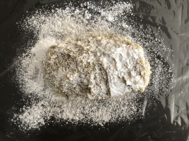 打ち粉(片栗粉)をふった台に生地を出し、