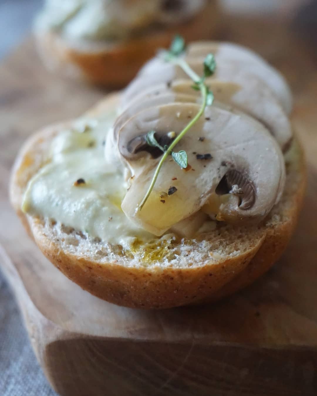 - パンまたはバゲットに③を塗り、マッシュルームをのせる