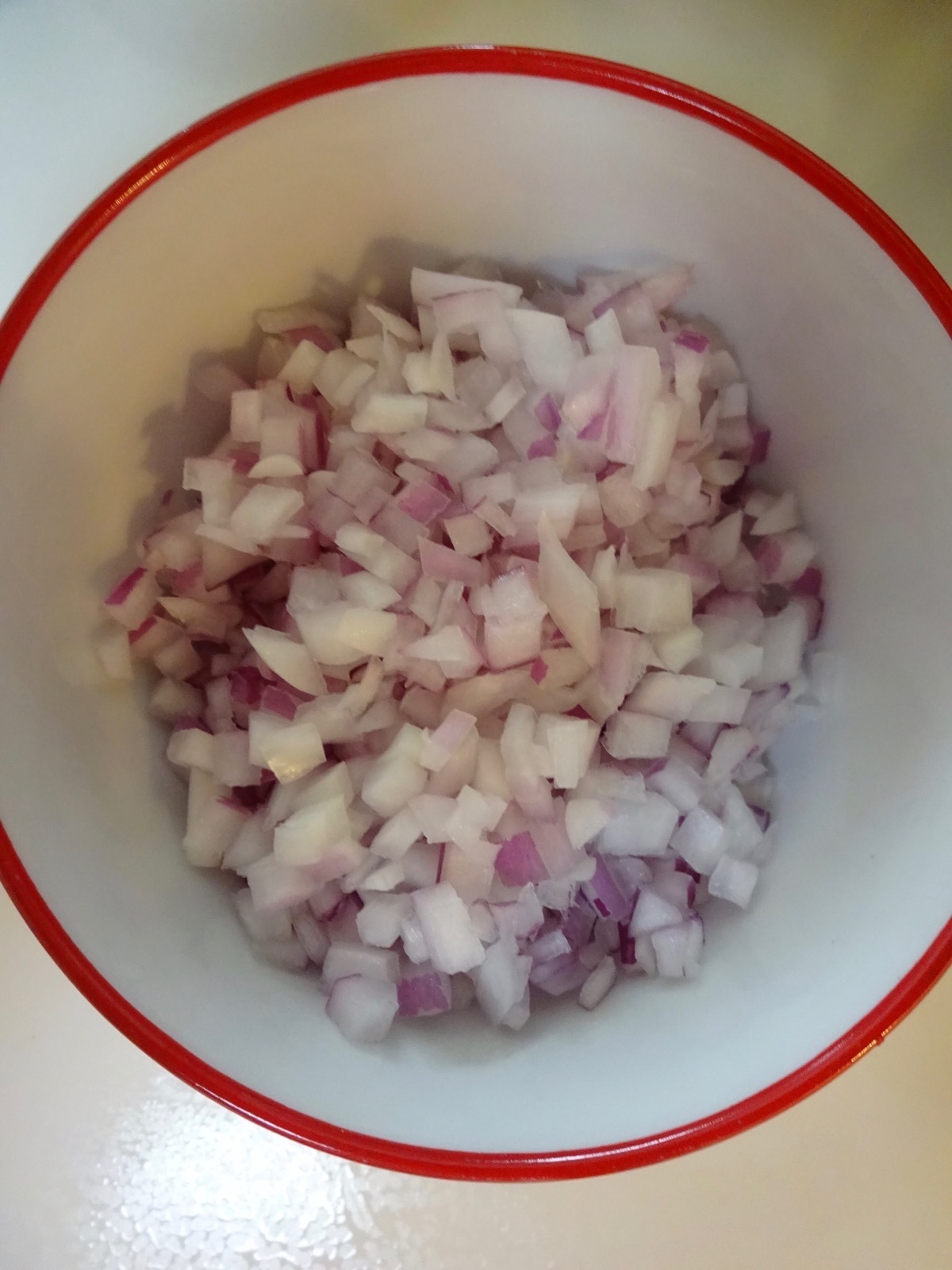 【下準備】玉ねぎ・にんにく・生姜(皮ごと)はみじん切りにする。みょうがは千切り、三つ葉は3cm長に切り、くるみは粗めのみじん切りにする。