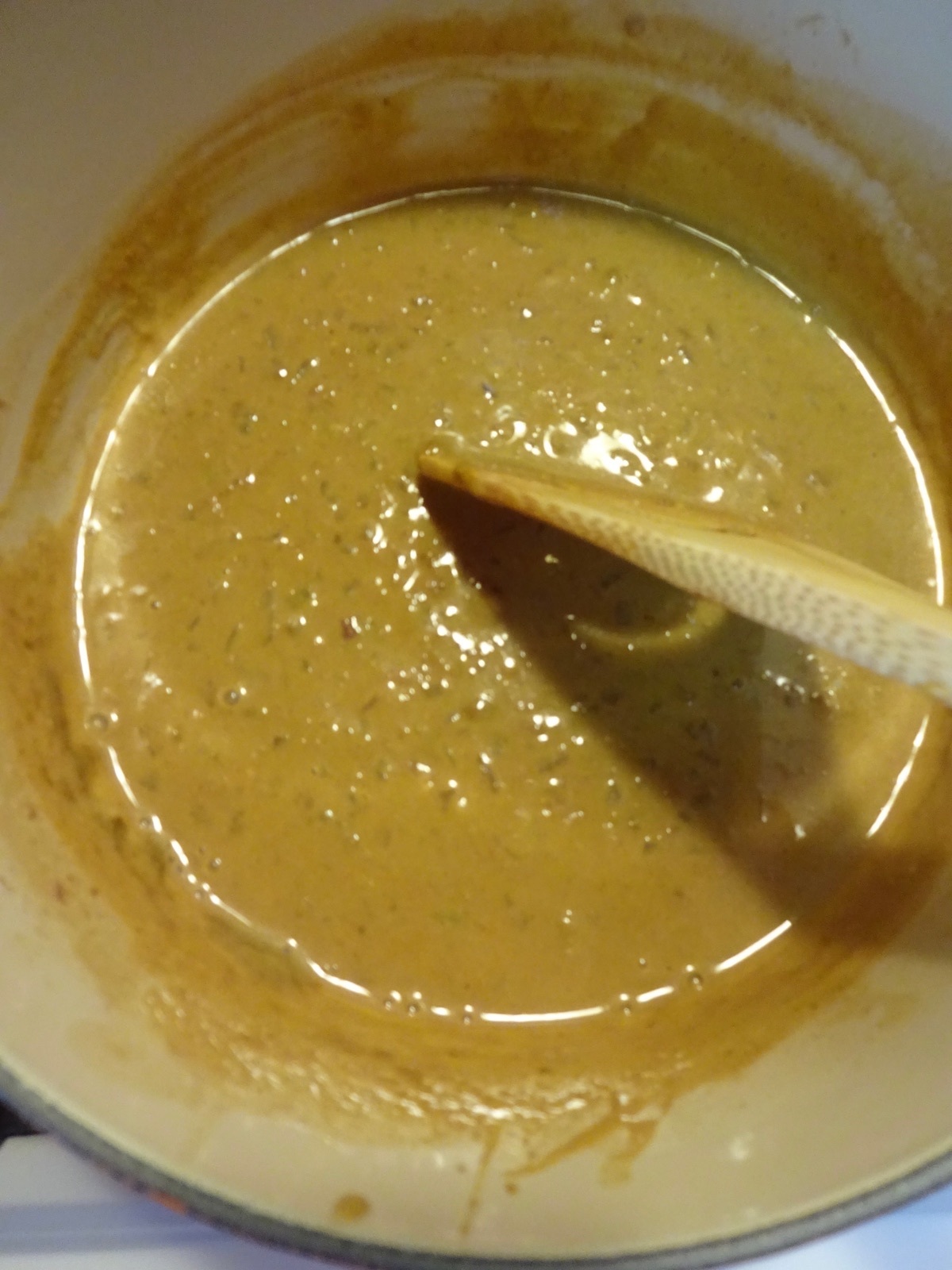 3にAを加えて一煮立ちしたら蜂蜜→鰹節→豆乳の順に入れて煮合わせる。再び一煮立ちしたら火を弱中火程度に弱め、さくらみそを溶く。カレーパウダーとナツメグを加えて混ぜ合わせ、味が馴染むまで約15分煮て火を止め、蓋をして置いておく。