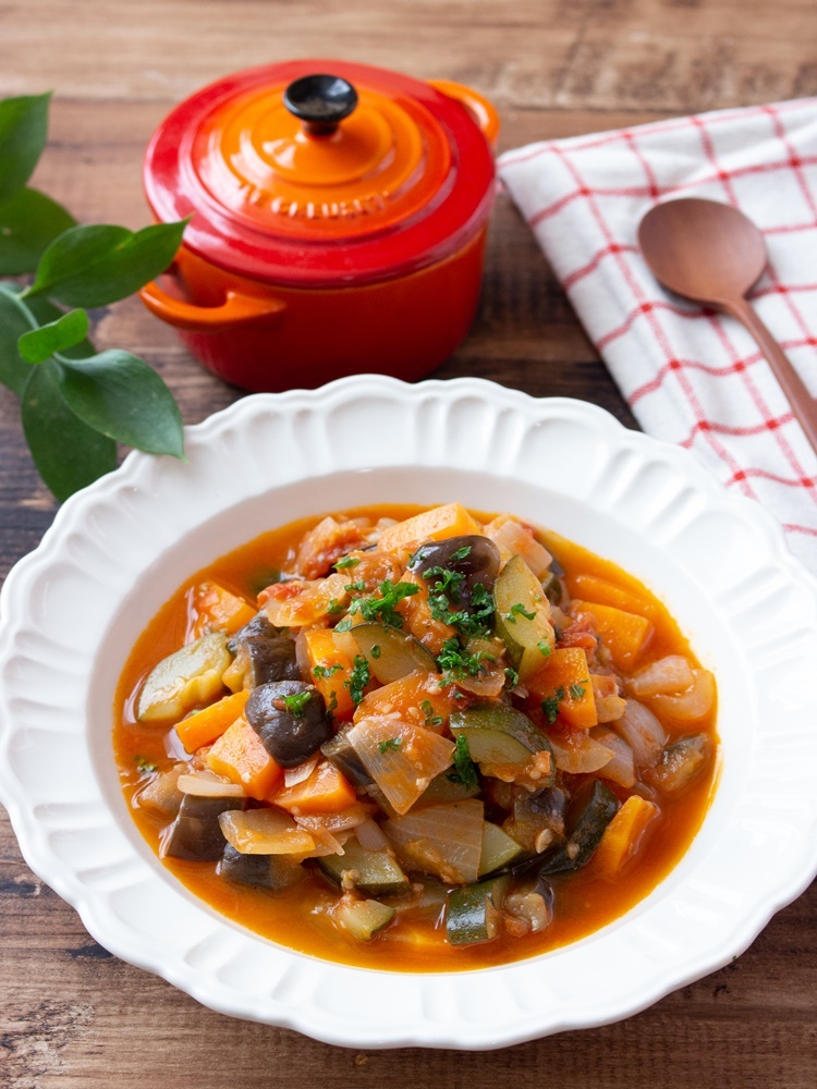 - 夏野菜や残り野菜で簡単に作れるラタトゥイユです。