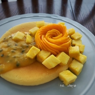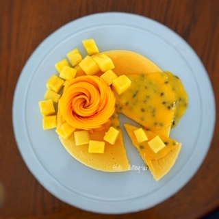 - ①のボウルにパッションフルーツの果肉を加え(半分に切りスプーンで果肉をかきだす)グラニュー糖を入れてよく混ぜる(ホイッパー使用)