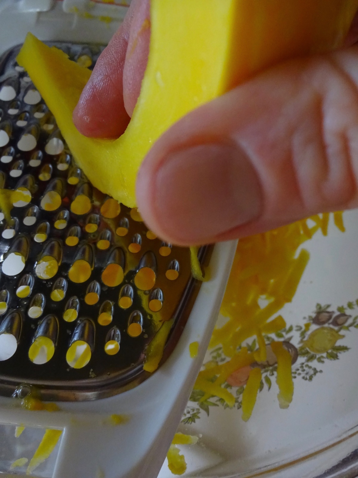 コリンキーの千切りはシリシリスライサーを使うと便利です。