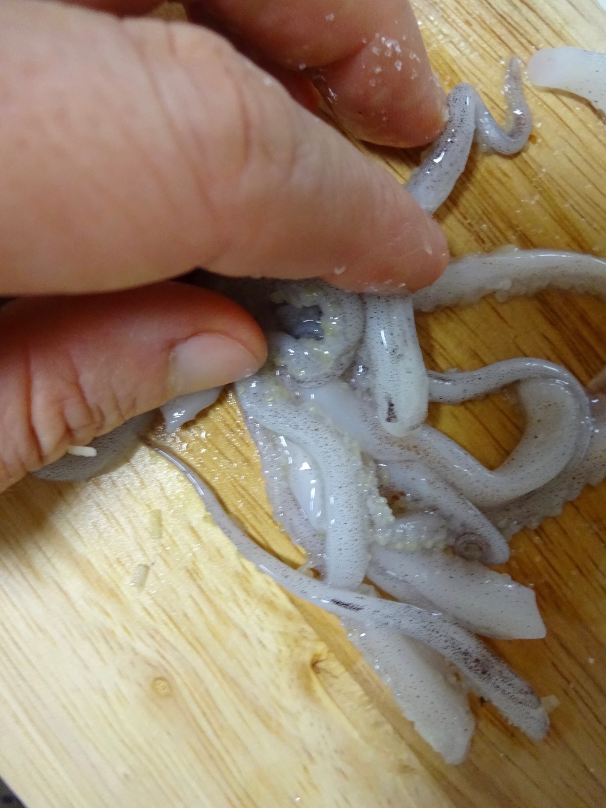 【下準備】いかのわたをきれいに掃除する。
