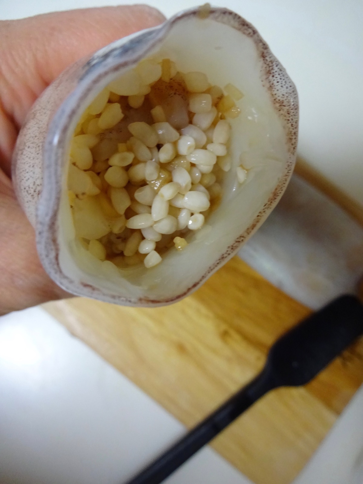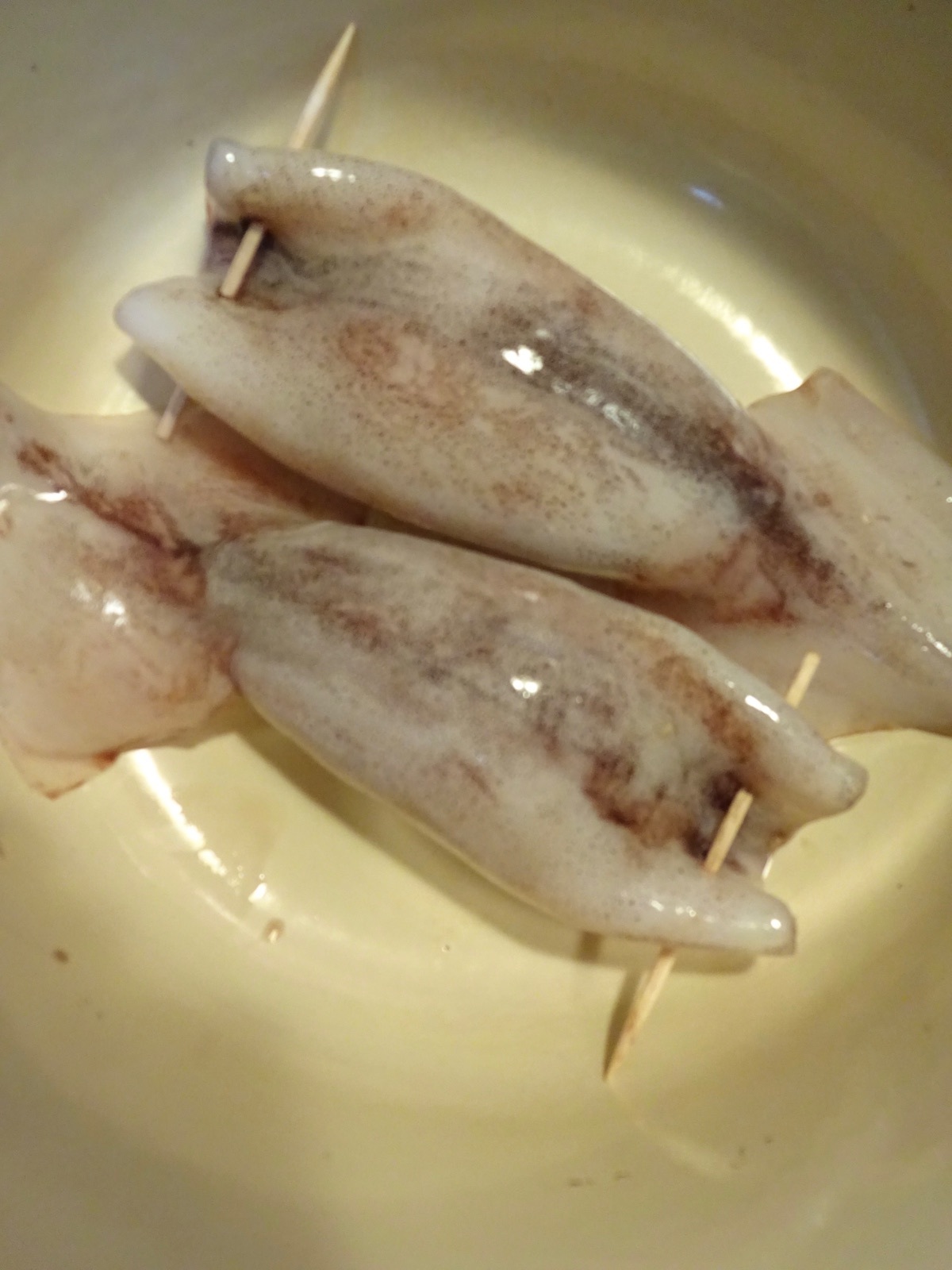 いかの胴体に6を詰めて口を楊枝で閉じる。