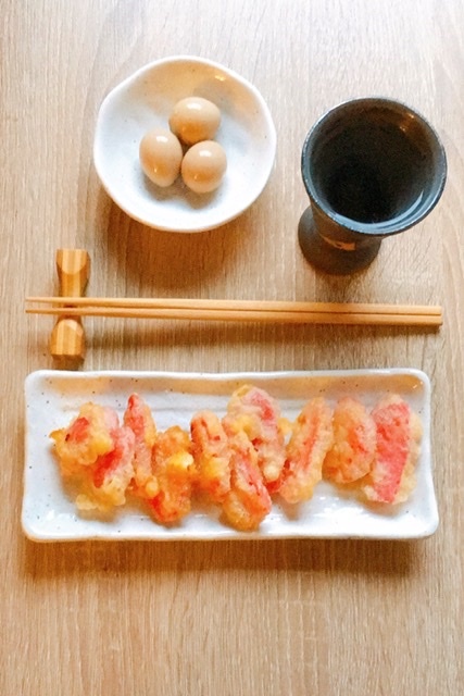 塊の紅生姜をスライスし、シンプルに揚げた紅天。生姜好きにはたまらない一品です。