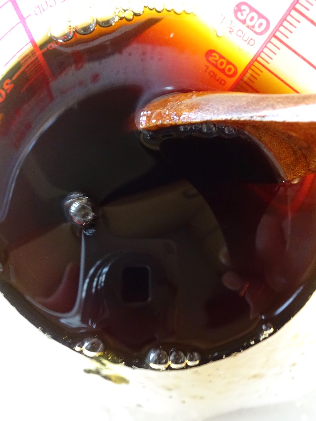 コーヒーは80℃の温度に入れてきび砂糖を混ぜ、かんてんクックを少しずつ加えて混ぜ合わせる。
