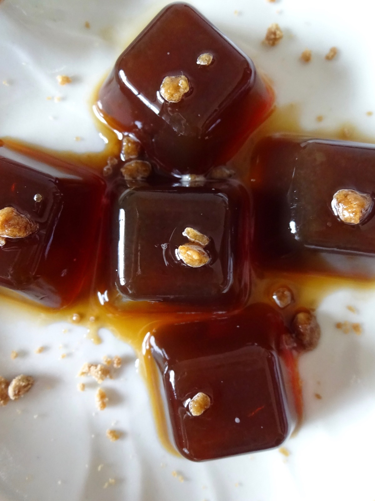 コーヒーゼリーならぬコーヒー寒天。トッピングには黒糖を。寒天でヘルシー!ダイエットにも◎