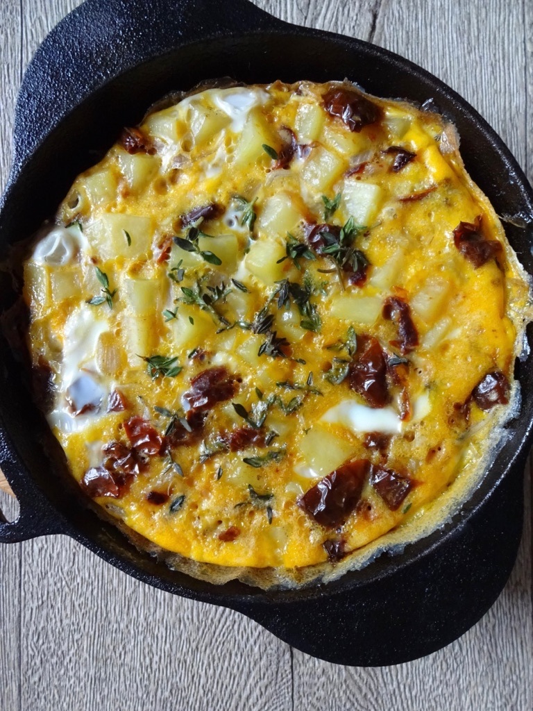 スキレットで作る!ドライトマトとちりめんじゃこのスパニッシュオムレツ