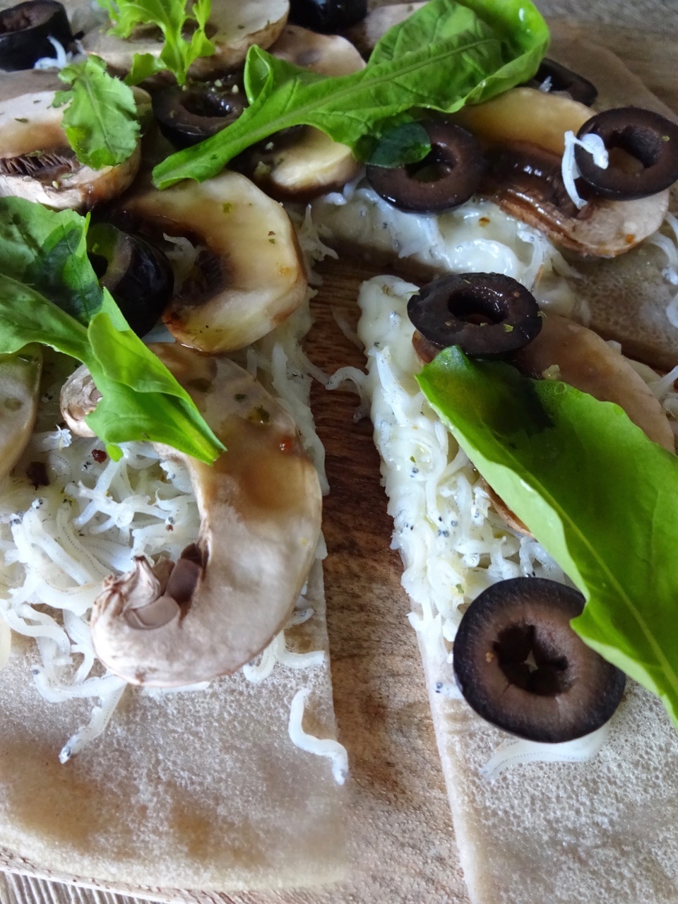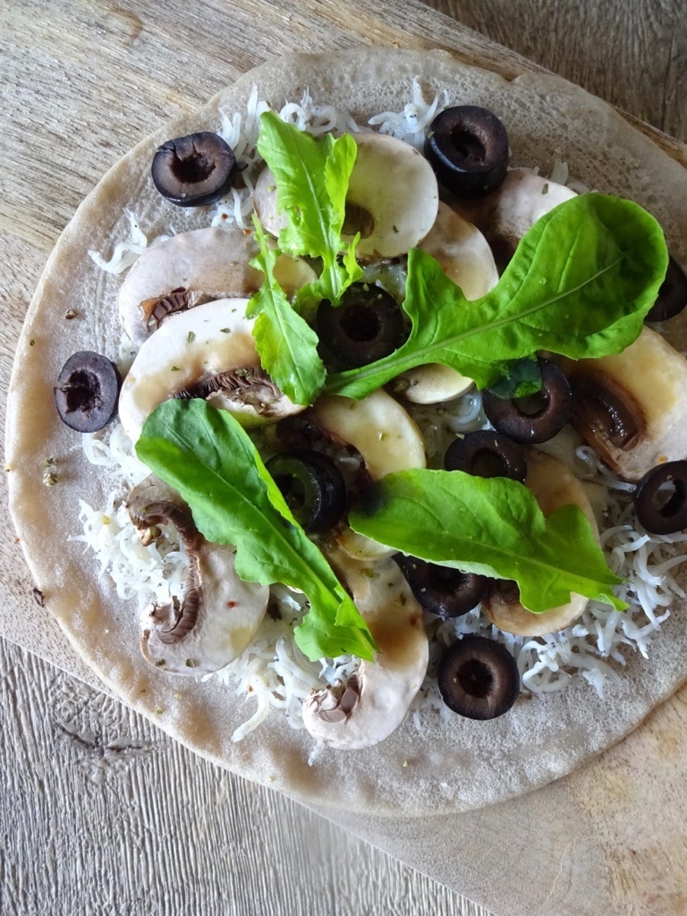 そば粉を水で溶いて塩を少々加えただけのガレット生地にしらすとチーズなどの生でも食べられる食材をトッピングしたピザ感覚のおつまみガレットです。