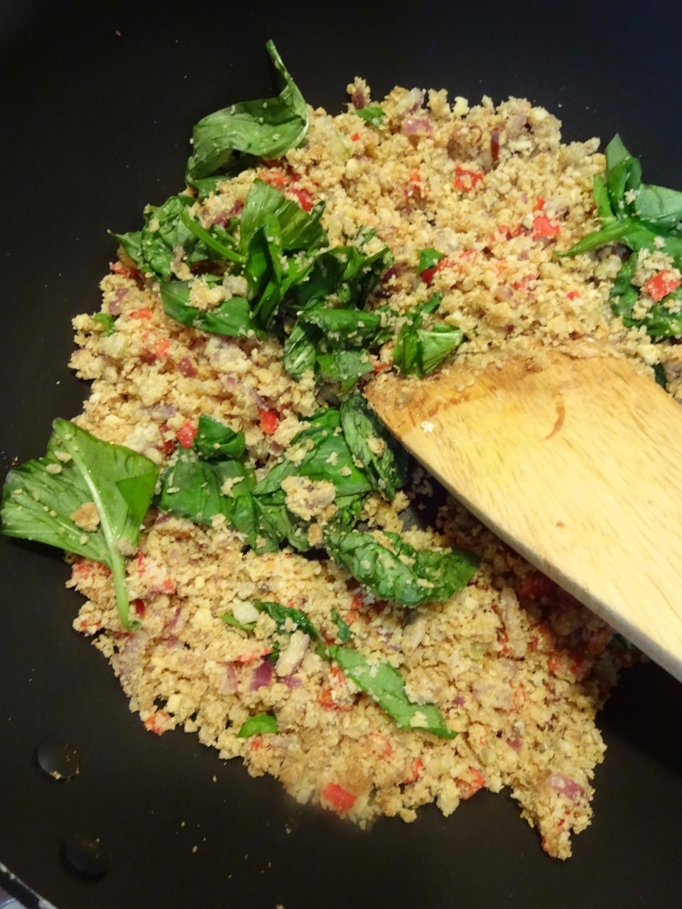 フライパンに菜種油を注いで中火にかけ、ニンニク→バジル以外の野菜→おからの順に炒め、Aとハーブソルトを加えて炒め合わせ、バジルを加えて更に炒める。バジルがしんなりとして他の具材に馴染んだら火を止める。