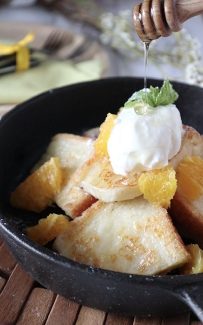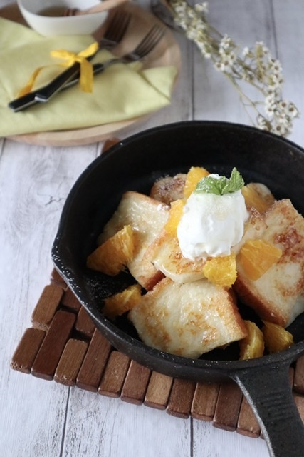 牛乳や卵などの代わりに、ヨーグルトを使ったモチモチ食感のフレンチトーストです。