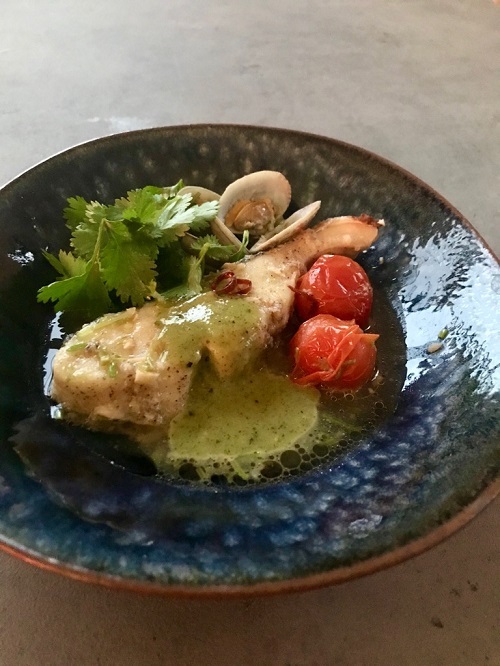 パクチーソースで食べるアクアパッツァ
