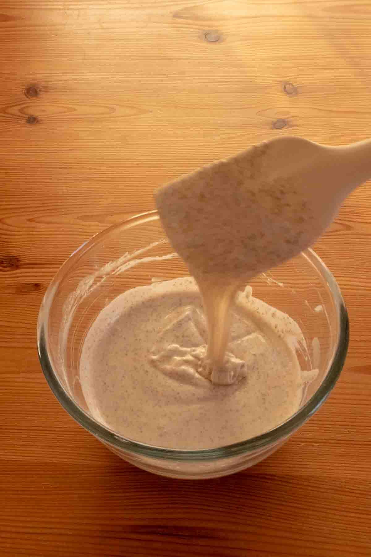 残りの水でボウルに残った酵母をゆすぎ、全て加え混ぜる。