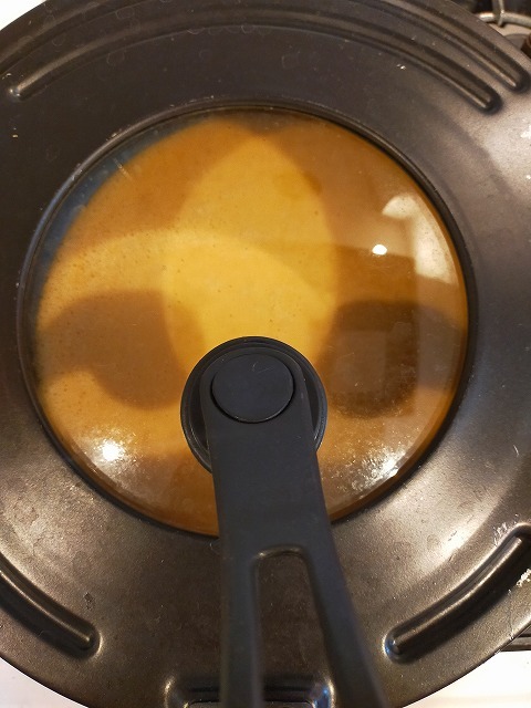 蓋をして一番弱い火で17分ほど焼き、焼き色がついたら蓋や器にひっくり返し、反対も1分焼く。