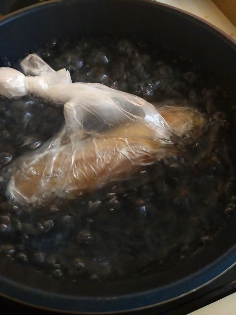 たっぷりのお湯を沸かし、【9】を入れ蓋をして⒑分弱火でかけ、火を止めて30分入れておく。粗熱取れたら冷蔵庫でしっかり冷やして完成。