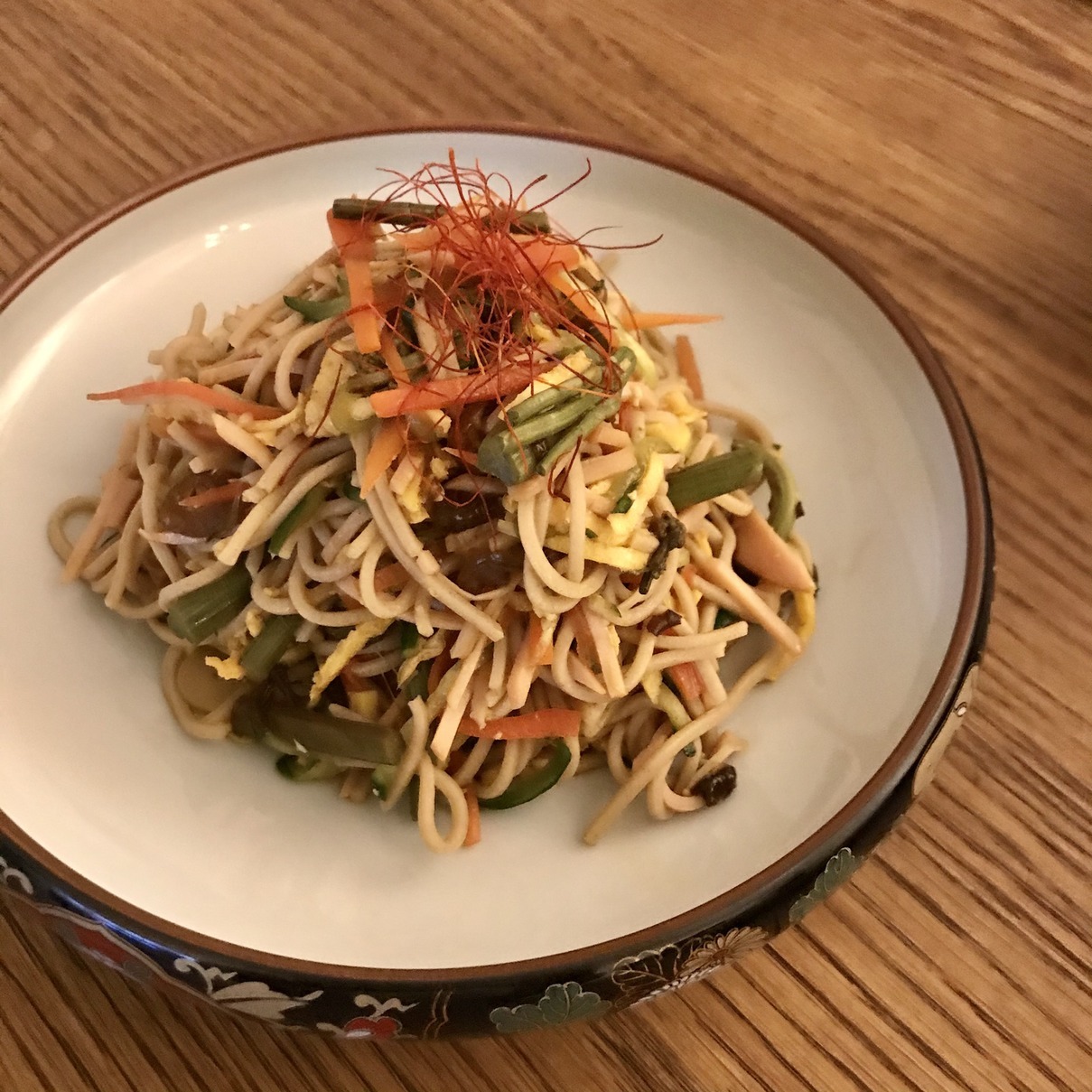 野菜たっぷり!メインにも副菜にもなる、そばを使った満足感のあるサラダです。