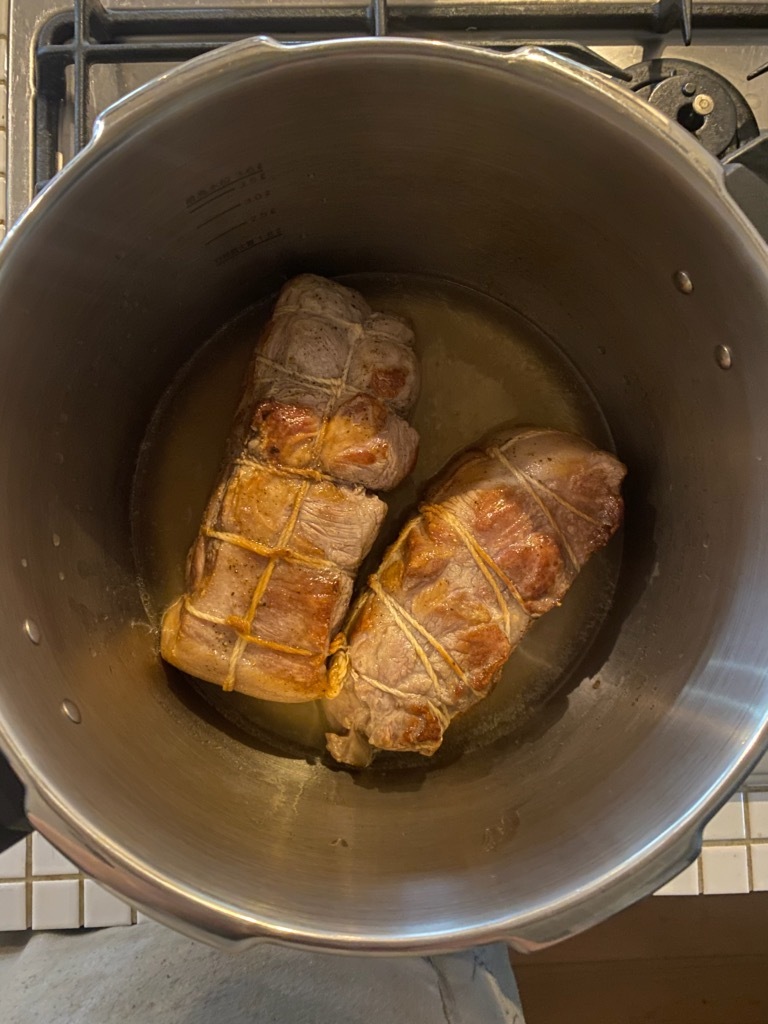圧力鍋に1を入れて水を加えたら蓋をして火にかける。