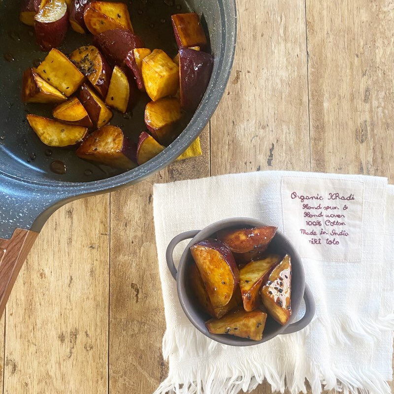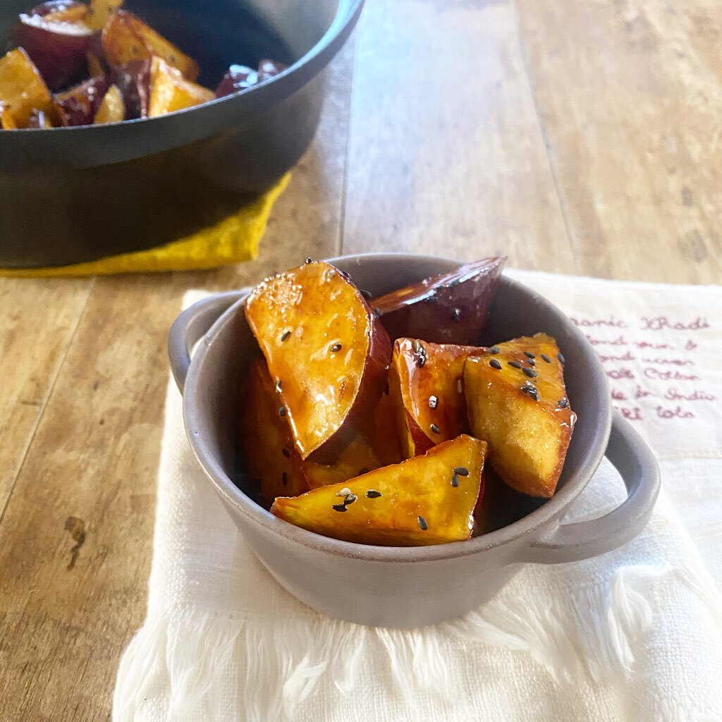 全体に蜜が絡まったら塩をかるくふりお好みでいりごまをまぶす。