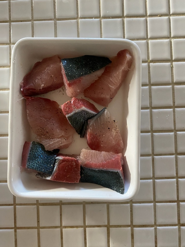 ぶりは一口大に切り、塩、胡椒をまぶし、ブロッコリーは子房にする。