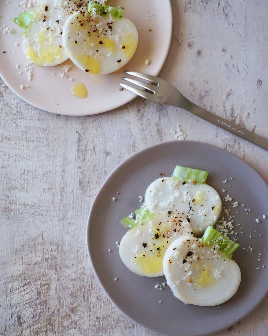 (歯ごたえ等気になる方は剥くか、塩を多めにふって揉みこんでください)