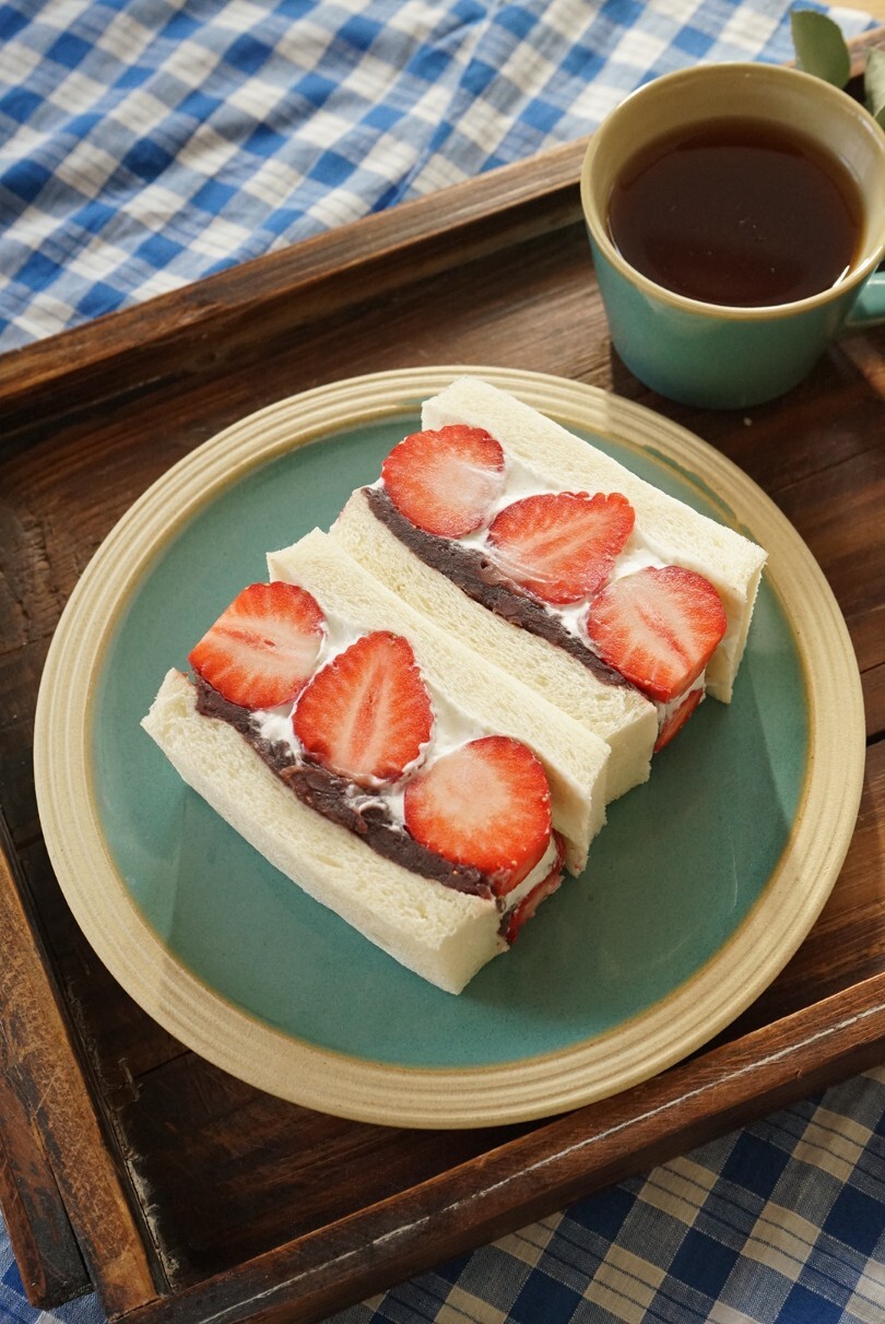 お店で人気のフルーツサンドイッチをお家で作ってみませんか?今回は苺をたっぷりはさんで作ってます。お好みのフルーツでぜひお試しください。お好みであんこを挟むのもオススメです!