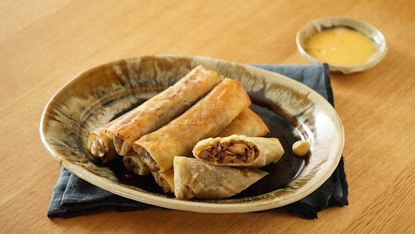 すき焼き風の甘辛い味付けでご飯が進むおかずに。春巻きの皮で巻いてフライパンで揚げ焼きにします。少ないお肉でも満足いくメインおかずに。