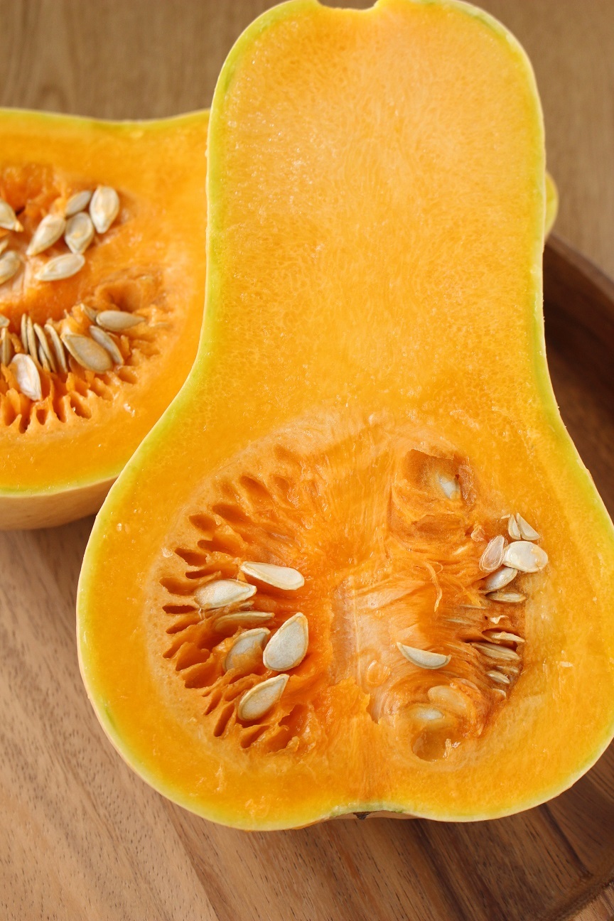 (3~4人分)甘くてクリーミーな味わいで、ひょうたんのような形の「バターナッツカボチャ」。水を使わずにさらに甘さを引き出すと、より濃厚でまったりとした味わいになります。