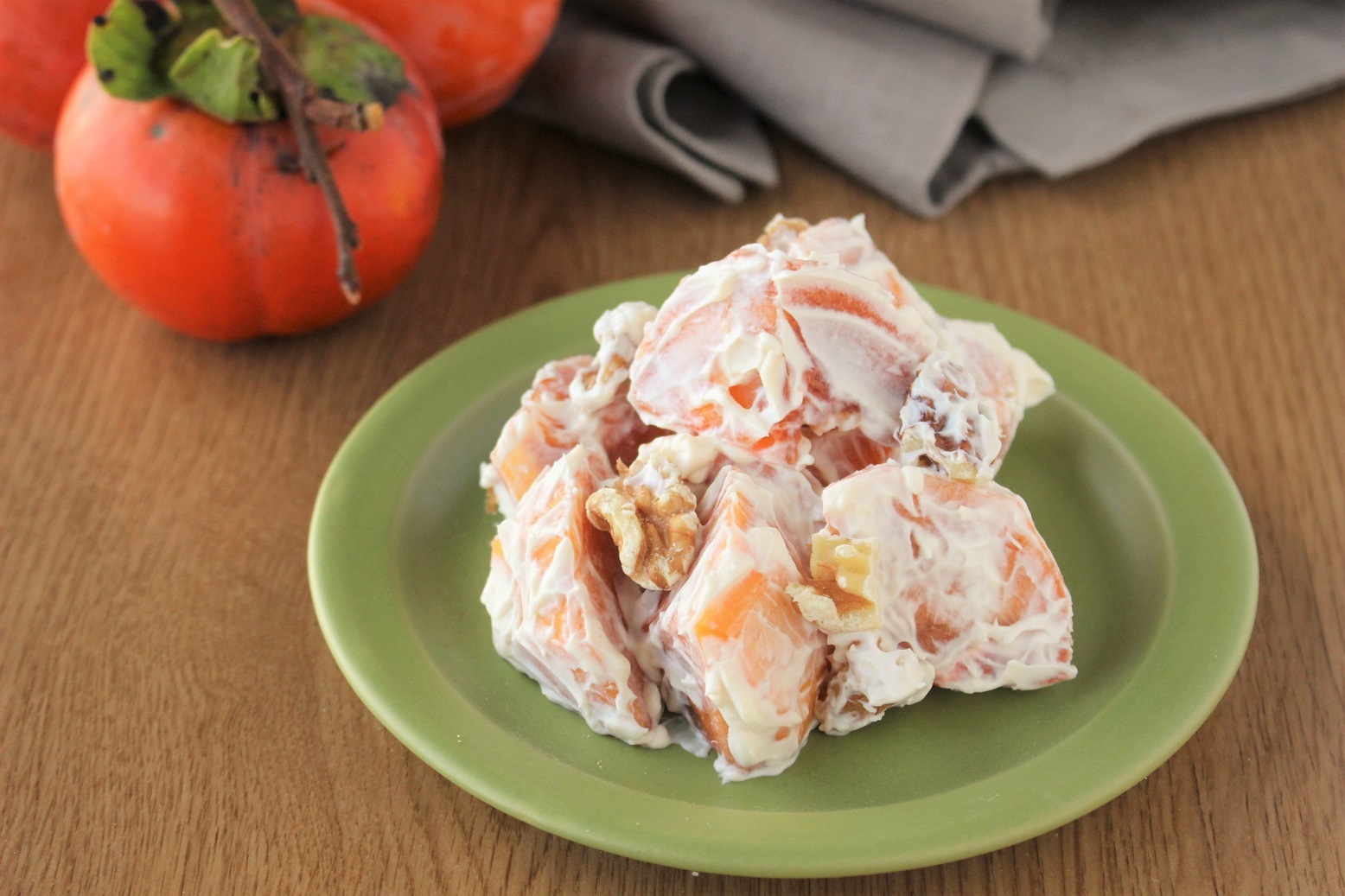 柿とクリームチーズの組み合わせは、甘さと塩気がクセになる組み合わせ。アクセントのクルミの食感と香りが、2つの味を繋いでくれるポイントとなり、秋のフルーツ「柿」をおかずとしても楽しめるひと品です。