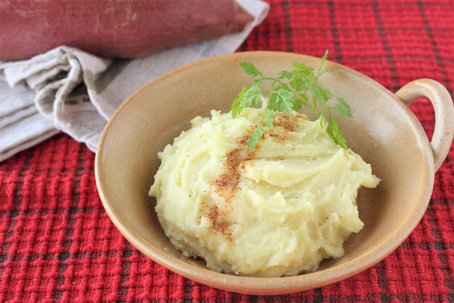 さつまいものほんのりとした優しい甘味が秋を感じるマッシュポテト。ナツメグのアクセントが味を引き締め、お肉料理などの付け合わせや、パンにのせてもいただけます。じゃがいもで作るマッシュポテトとの味わいの違いを楽しめます。