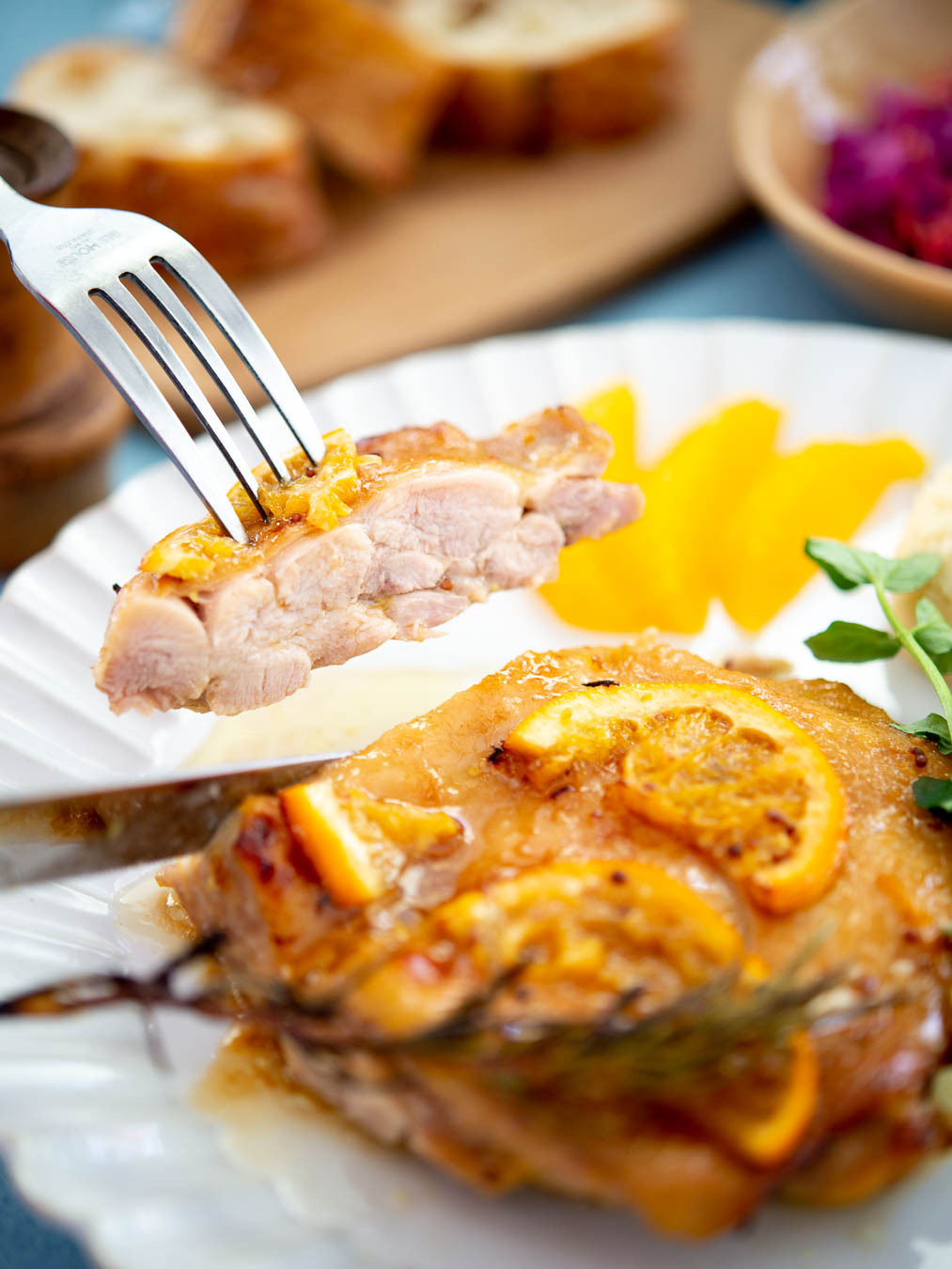 オレンジの爽やかな酸味とハーブの香りが相性抜群◎マリネで風味や味をつけるだけでなく、肉がしっとり柔らかく仕上がります。
