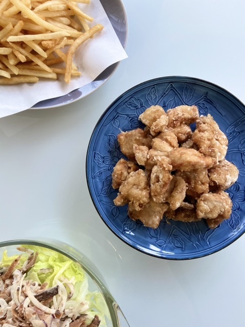 - 2に片栗粉をまぶし、180度にサラダ油を熱して