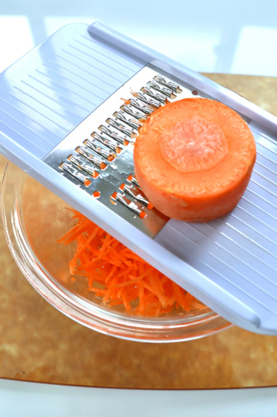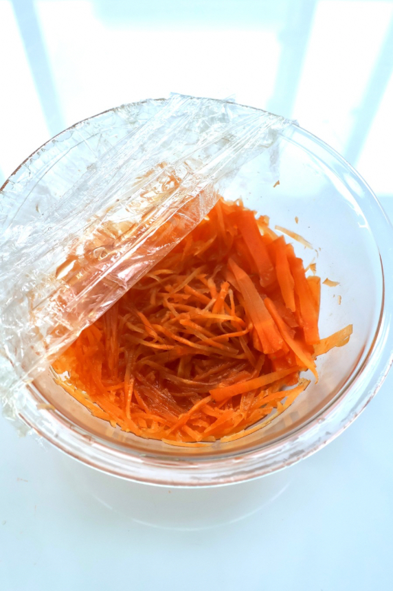 にんじんは千切りにする。