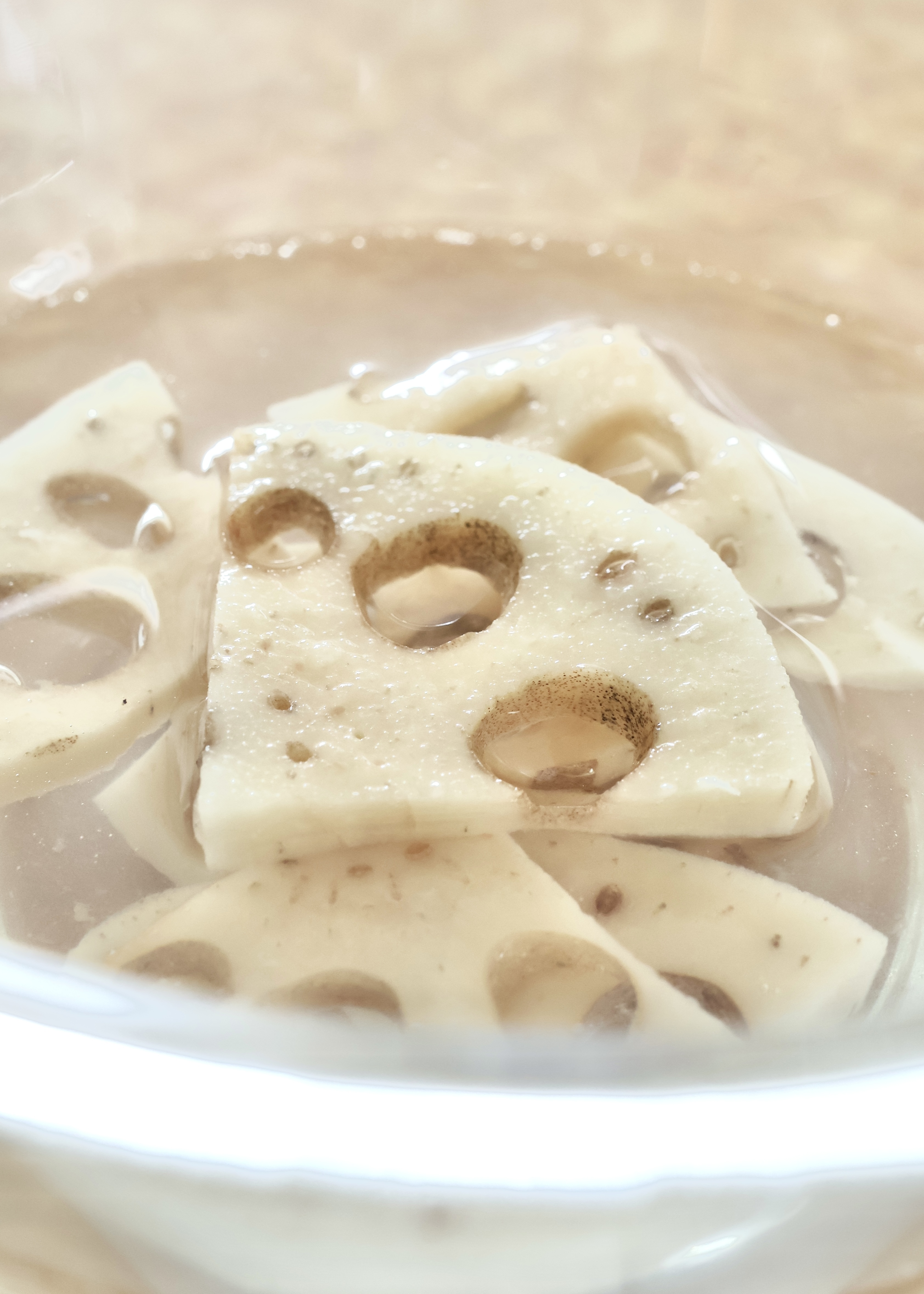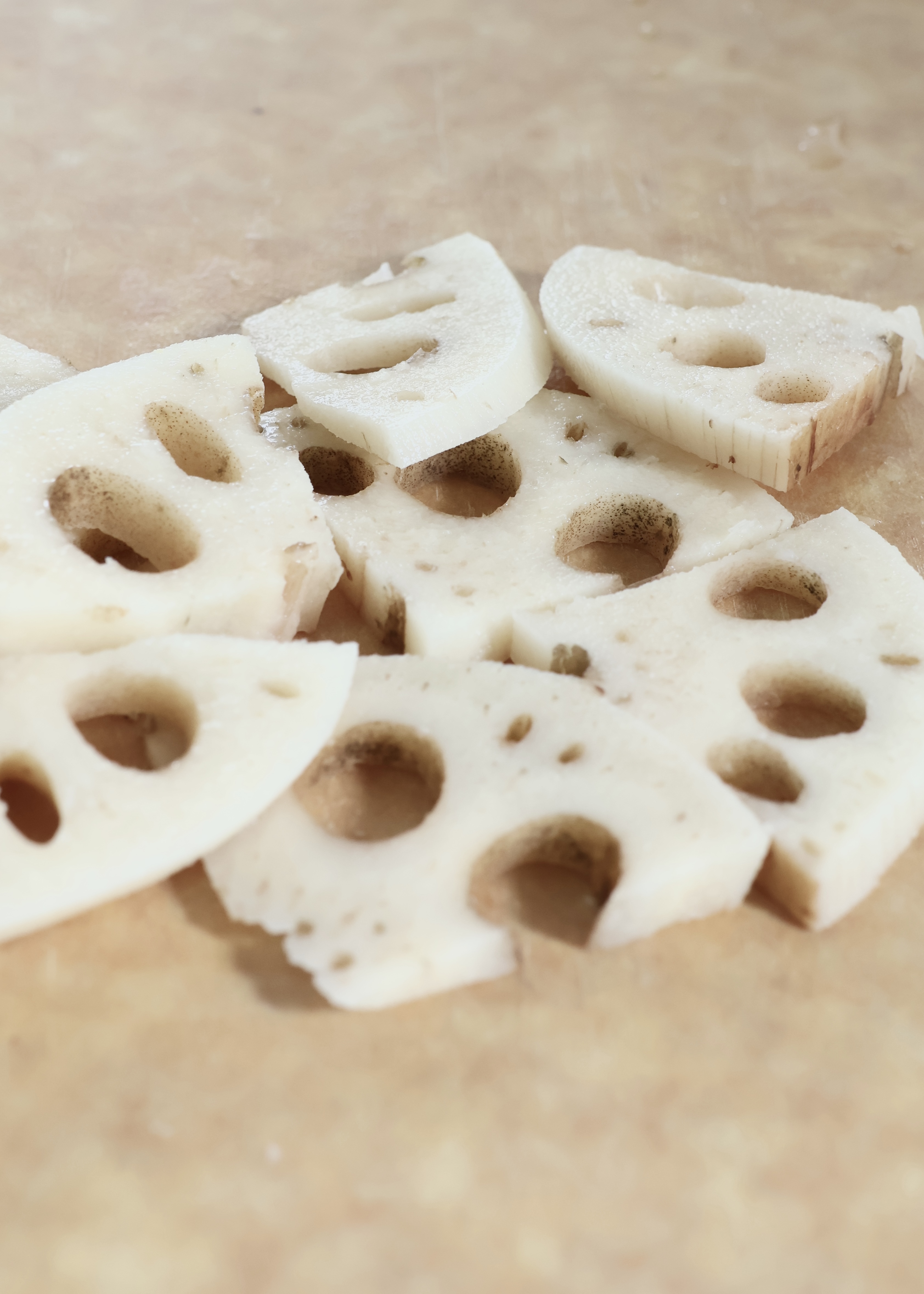 れんこんは食物繊維が多いので満腹感を得られやすく、ビタミンCとタンニンが含まれ美白効果も。