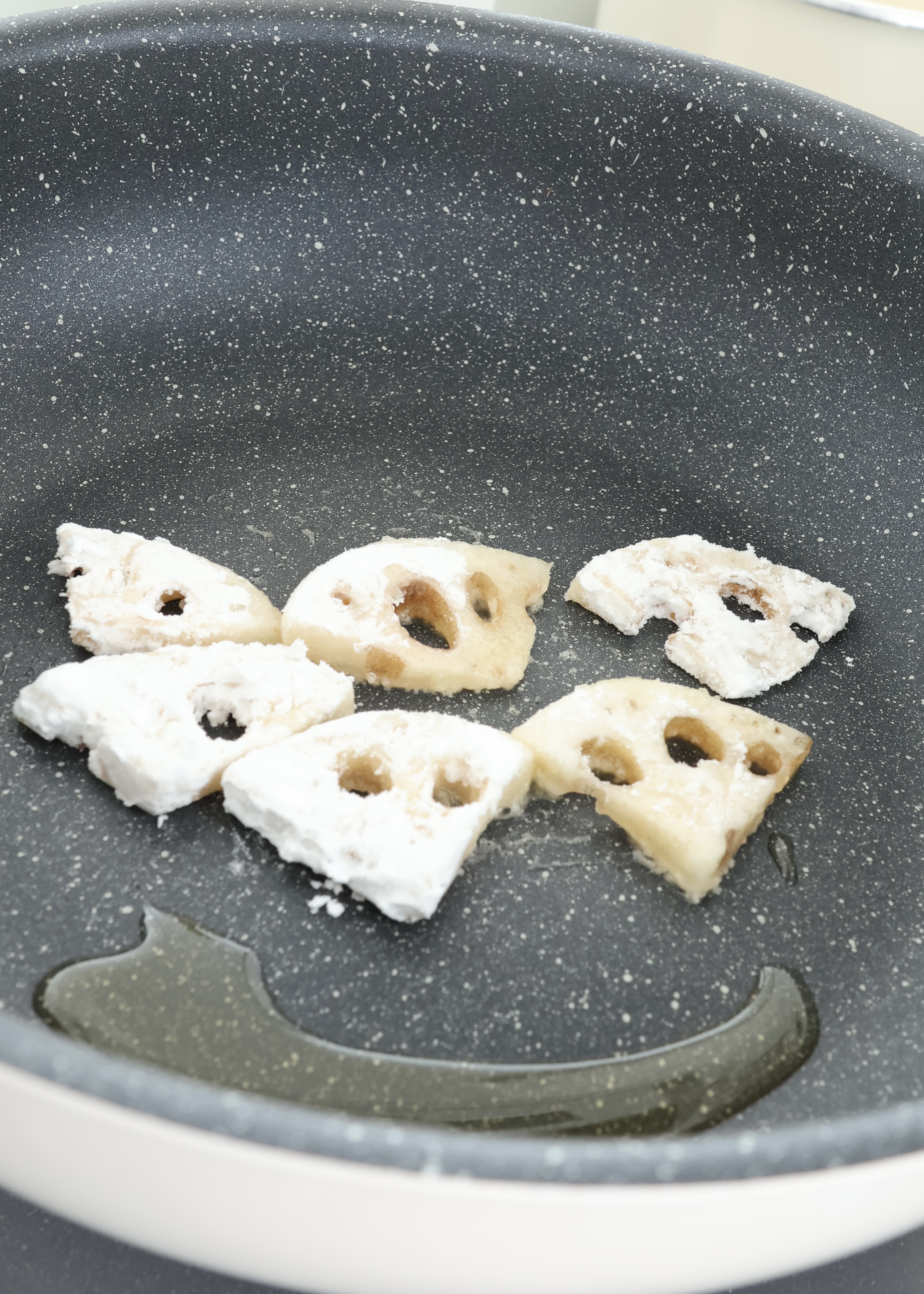 ②の水気をよく拭き取り容器に入れて片栗粉をまぶす。