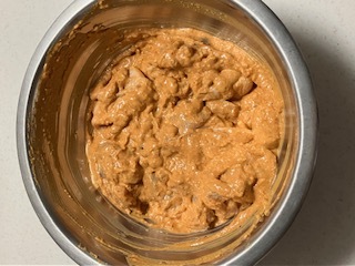 ①赤いマサラを作る。ボウルに☆の材料を全て入れ、ダマにならないようホイッパーでしっかり混ぜる。
