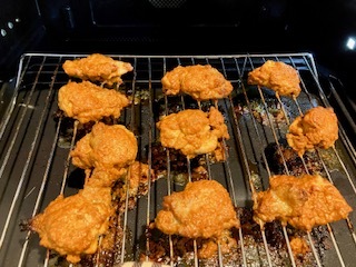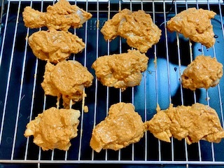 ③オーブンまたは魚焼きグリルで焼く。網に②を並べ、残った赤いマサラを表面に塗る。オーブンの場合は300℃10分、魚焼きグリルの場合は中火~強火で9分、上下を返して4分焼く。
