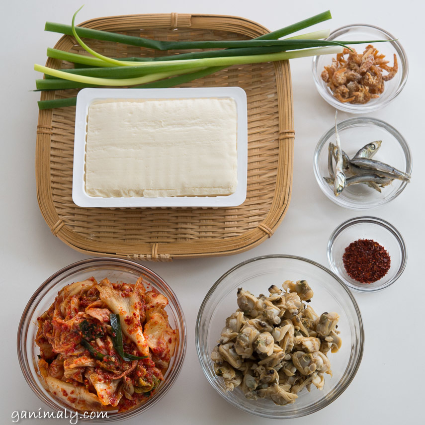 このレシピでは、アサリ缶と干しエビ、煮干しで海鮮の出汁をとります。特別な調味料は使わず、おいしいキムチがいい味を出してくれます。