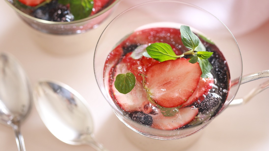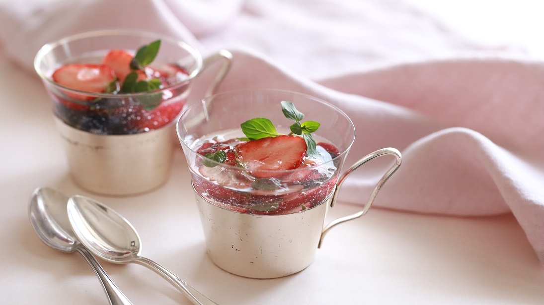 夏はイチゴのかわりに柑橘でも、秋は桃や梨でも簡単に季節のジュレを楽しめます。