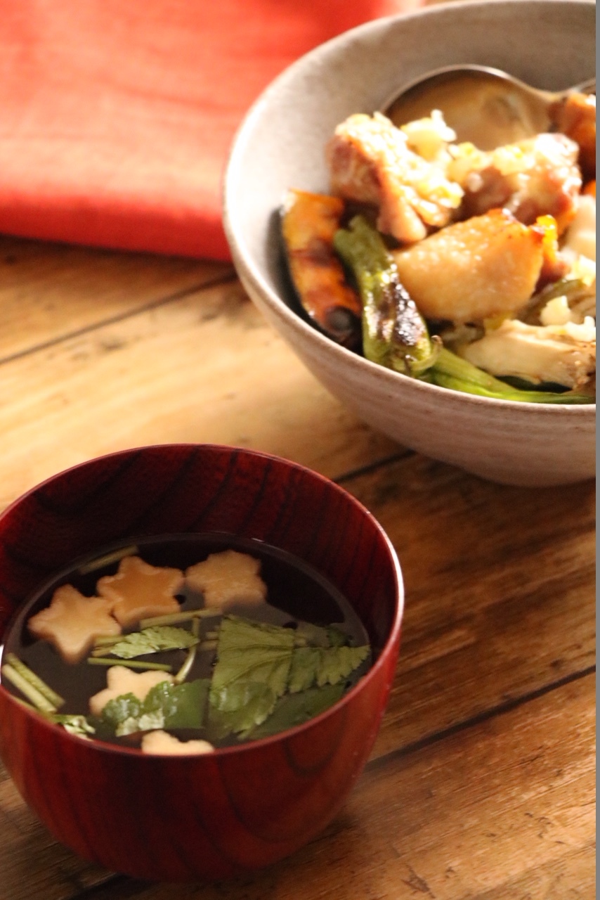 写真は鶏肉を焼く際、小松菜、まいたけ、ししとう、かぼちゃの薄切りを一緒に焼きました。