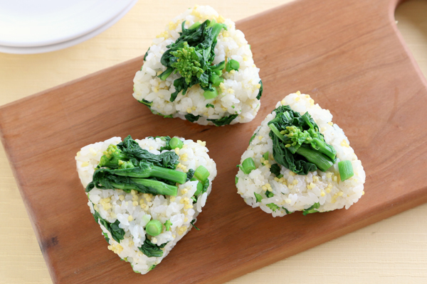 - ボウルに雑穀ごはん、菜の花(刻み)を入れて混ぜ合わせる。