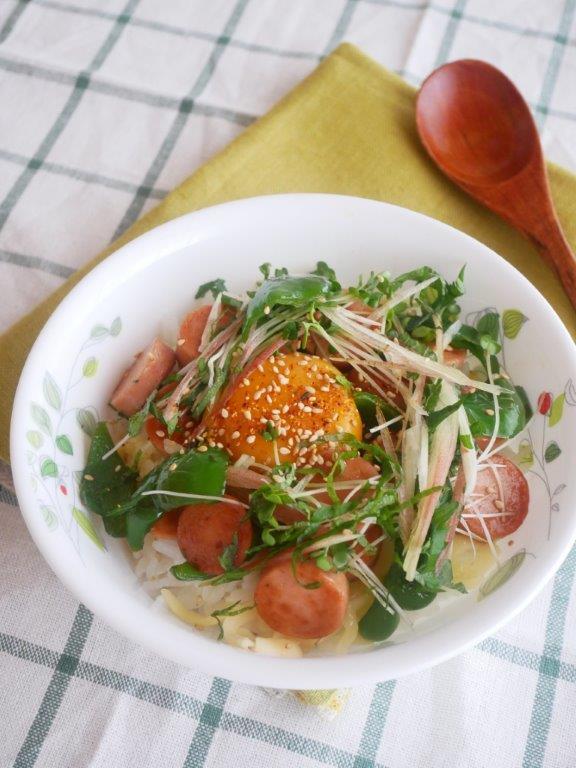 魚肉ソーセージを使って、1品で大満足なごはんものの提案です。
