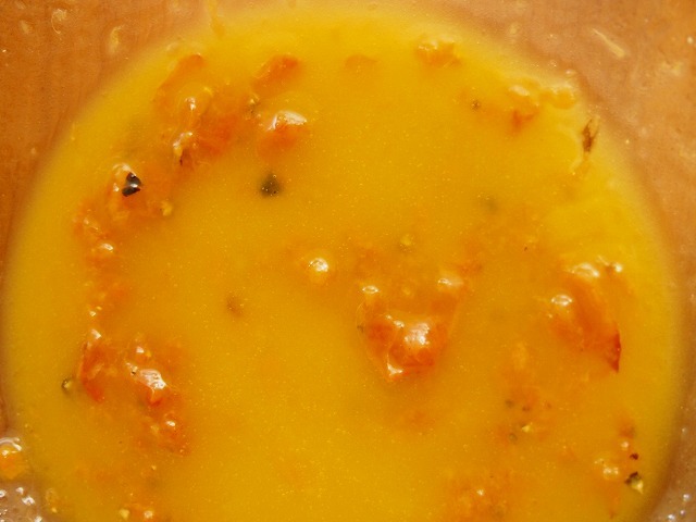 ボウルに白ワインビネガー、塩・黒こしょうを入れ混ぜ、少しずつオリーブオイルを入れてとろみがつくまで混ぜる。梅干しを入れて混ぜ梅ソースを作る。