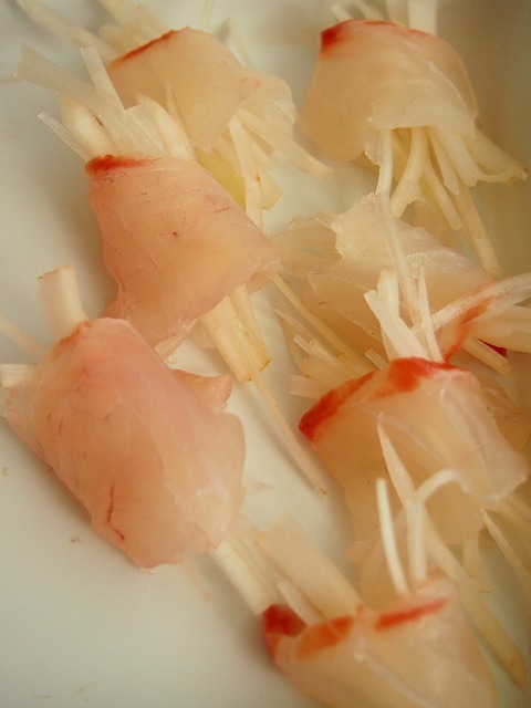 春の山菜の一つ、香りが良くシャキシャキとした食感が鯛との相性も抜群です。