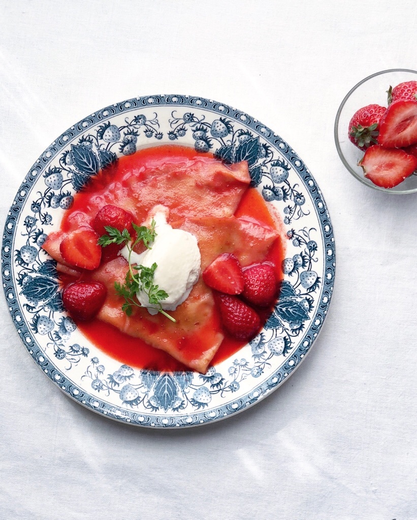 いちごのソースでこの時期だけの春のデザートクレープを作りました。