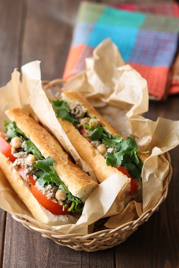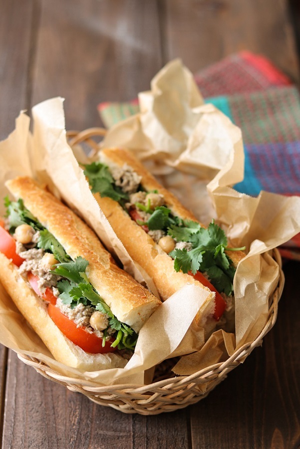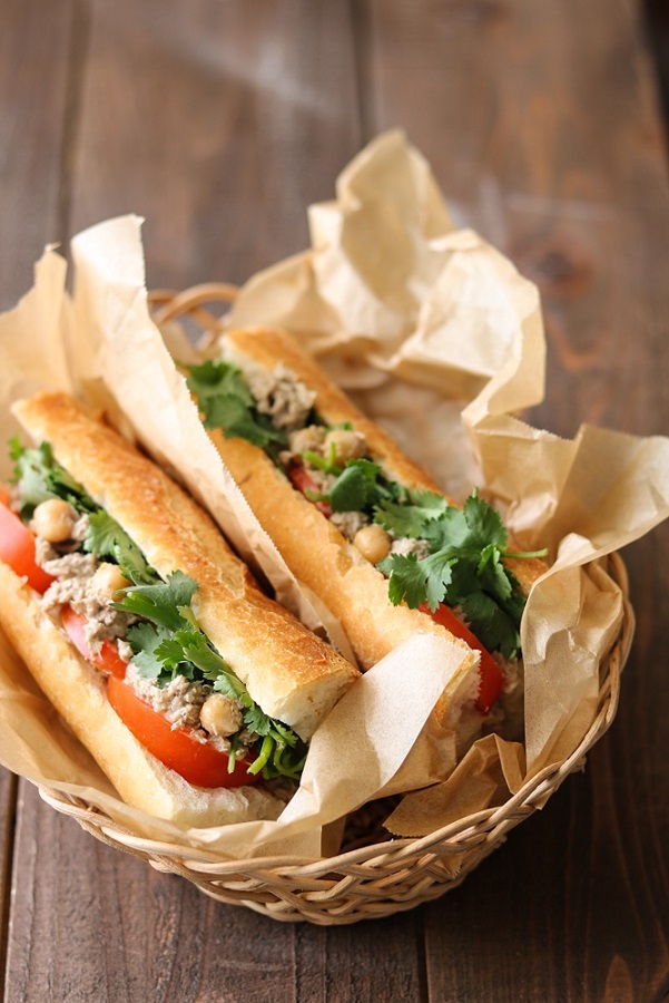 サバの水煮缶を使ったバゲットサンド。ひよこ豆やクミンなどを使ってメキシカン風に!スライスしたバゲットに載せて、オープンサンドにしても美味しくいただけます。