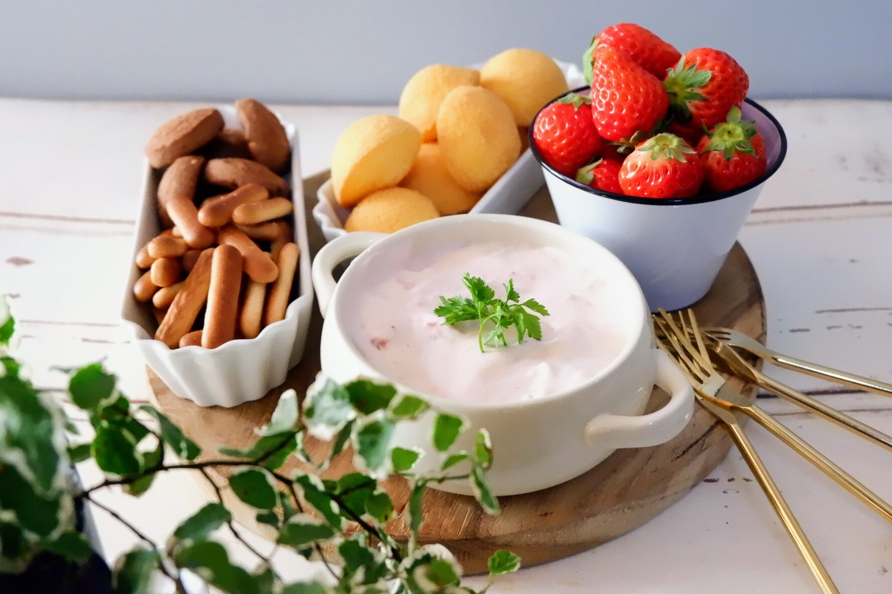 春が一番美味しい苺を使ったクリームです。 お好きなお菓子を自由にディップしても、苺をつけてもよし‼ 苺リキュールを入れて大人向けにしています。 お子さんを集めたパーティーなどには、リキュールなしでどうぞ。