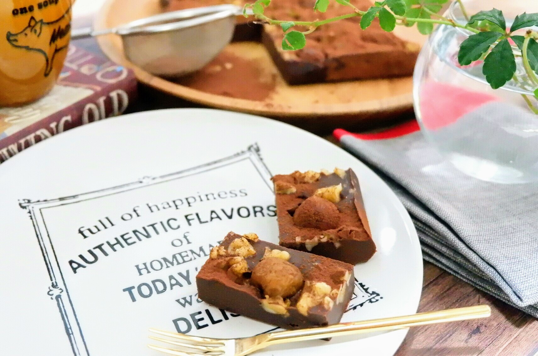 15㎝の流し型にチョコレートを流し入れて、いちぢくとナッツを散らすだけ!