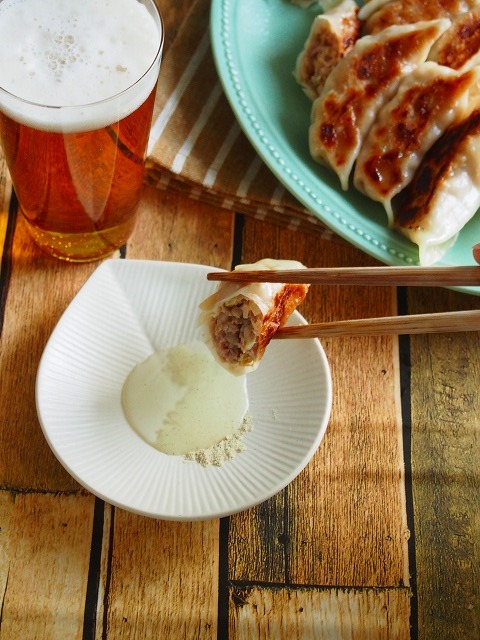 餃子の具材に、白菜の浅漬けと玉ねぎのみじん切りを入れるのが森田家流。味付けに味噌をいれるので旨みも倍増です。しっかり味がついているのでたれ無しでも美味しく召し上がれます。