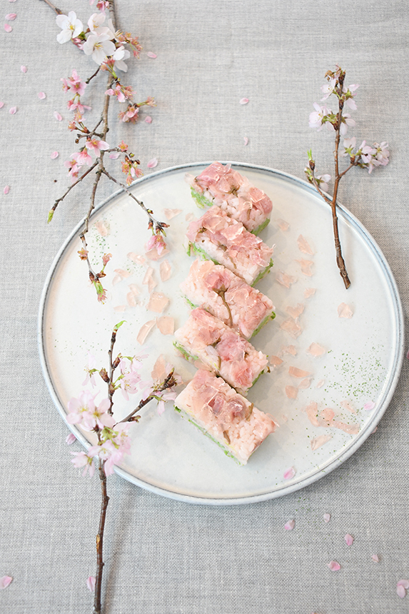 季節にちなんだお米料理、今回は《春編》。「桜と抹茶の寿司サンド」をお楽しみください。